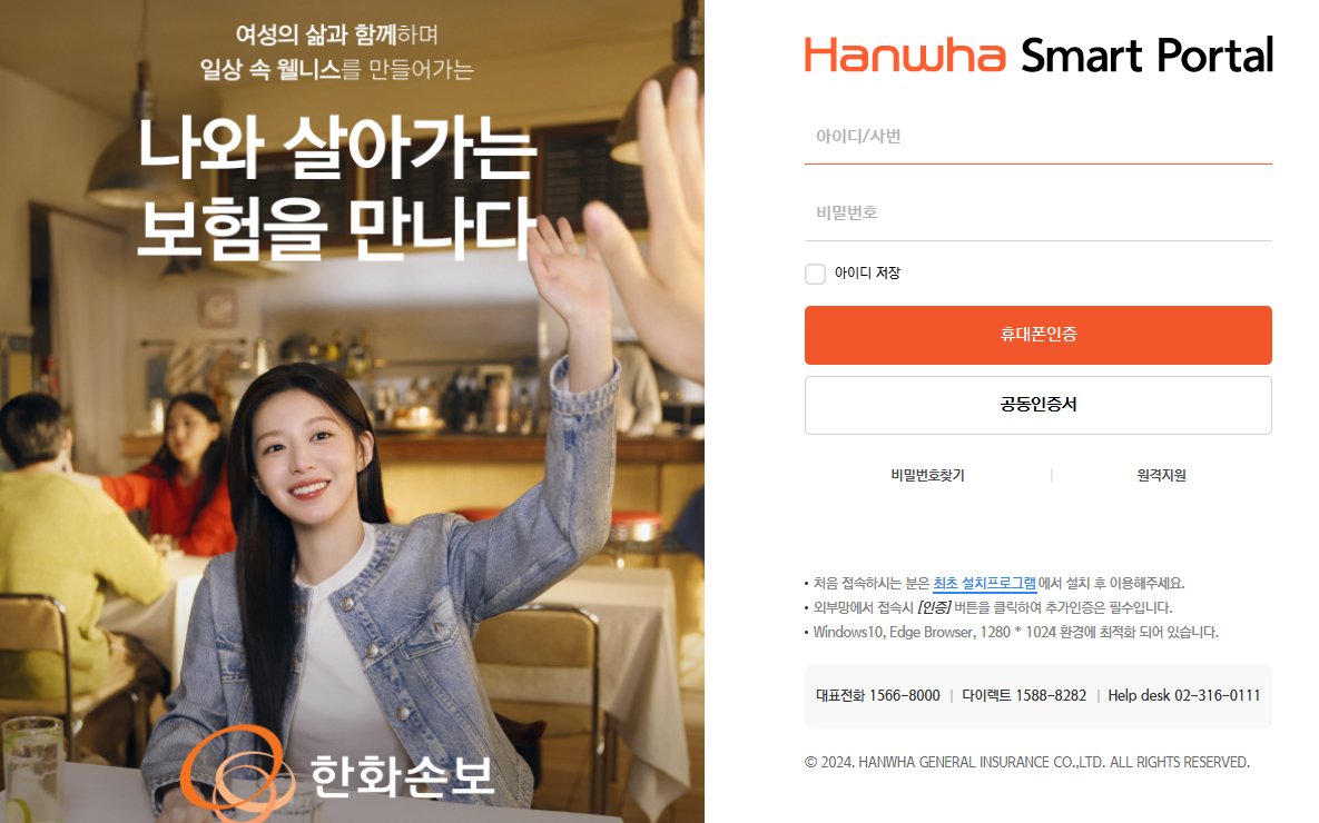 - 웹 브라우저에서 portal.hwgeneralins.com 접속
